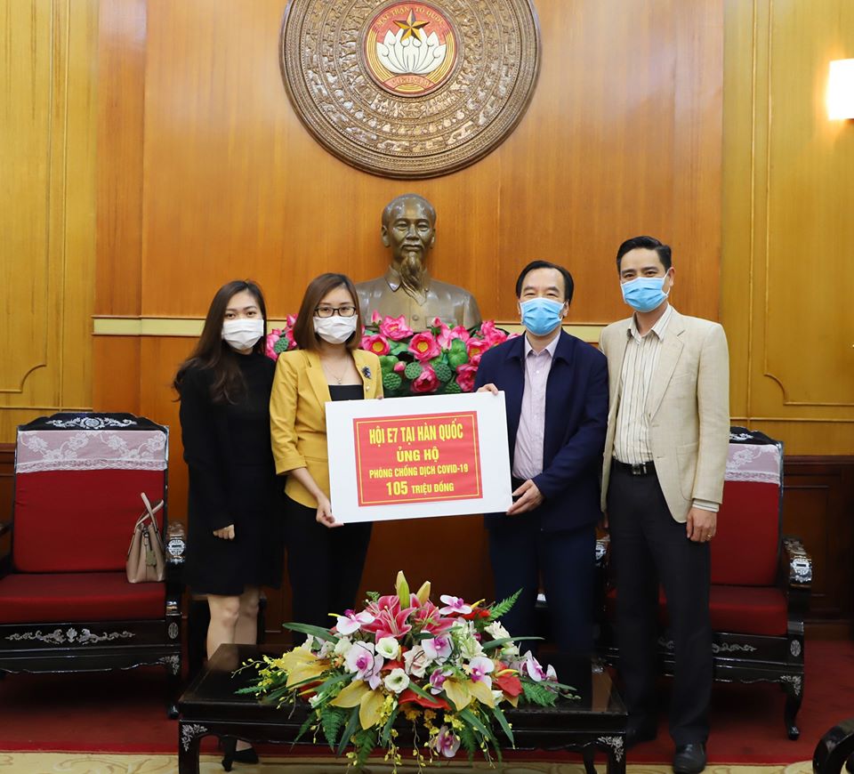 Thứ tư là nhóm các chuyên gia, trí thức, lao động đang làm việc tại Hàn Quốc theo chương trình E7, sau một thời gian kêu gọi, Hội cũng đã ghi nhận và đã nhận được thông tin là đơn vị đã về Việt Nam trực tiếp trao số tiền này tới Ủy ban Trung ương Mặt trận Tổ quốc Việt Nam. Trong thời gian qua có rất nhiều chương trình kêu gọi từ Hội người Việt cơ sở tại Hàn Quốc để cùng giúp đỡ bà con trong việc phòng chống dịch Covid-19.
