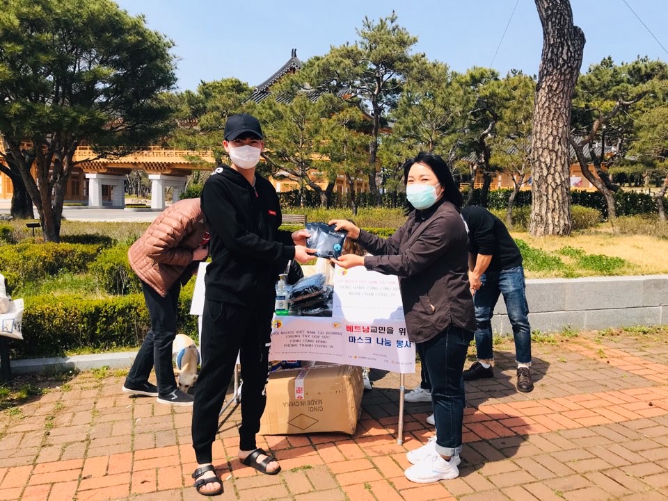 Trong thời gian vừa qua, theo ghi nhận của Hội người Việt Nam tại Hàn Quốc đã có nhiều chương trình của người Việt chung tay và hướng tới những bà con khó khăn. Đầu tiên, đó chính là chương trình do Hội người Việt Nam tại Hàn Quốc phát động trong việc kêu gọi cộng đồng cả trong và ngoài nước cùng hướng tới vùng tâm dịch Daegu, Gyeongbuk cũng như các địa bàn khác có dịch. Sau đợt phát động kêu gọi quyên góp, Hội người Việt Nam tại Hàn Quốc đã mua và trao 10.000 chiếc khẩu trang cho cộng đồng bà con kiều bào. Trong đợt đầu, riêng khu vực tâm dịch Daegu đã nhận 3.000 khẩu trang còn các khu vực khác thì chia đều cho 14 đơn vị cơ sở tại 14 thành phố trên toàn Hàn. Trong đợt hai dưới sự hỗ trợ cũng như kết nối của Đại sứ quán Việt Nam Hàn Quốc, Hội người Việt Nam tại Hàn Quốc có nhận thêm được 5.000 chiếc khẩu trang do Hiệp hội hữu nghị Hàn - Việt trao tặng. Với tấm lòng, tình cảm của Hiệp hội hữu nghị Hàn - Việt, Hội người Việt Nam tại Hàn Quốc đã trao món quà này tới các địa phương cơ sở.