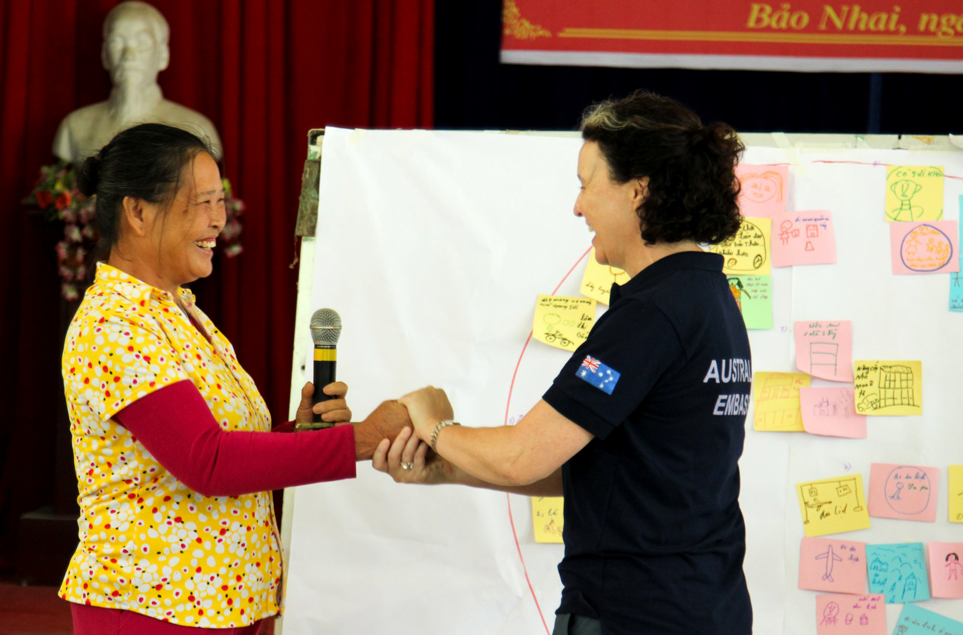 Bà Rebecca Bryant, Phó Đại sứ Úc tại Việt Nam và ông Châu Hồng Phúc, Phó chủ tịch UBND tỉnh Đồng Tháp tại buổi lễ khai trương làng bích họa – một dự án thúc đẩy du lịch tỉnh Đồng Tháp do Chính phủ Úc hỗ trợ - tháng 1/2018. Ảnh ĐSQ Australia tại VN. |