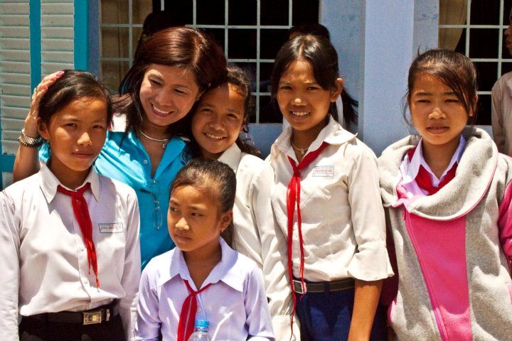 | Bà Đỗ Minh Hiếu (áo xanh) cùng các em nhỏ vùng sâu Sóc Trăng |