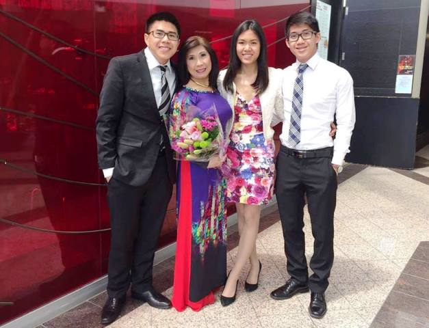 | Bà Đỗ Minh Hiếu cùng các con trong một lần gây quỹ cho DFRO |