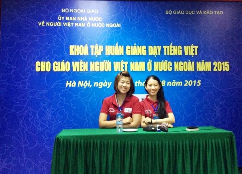 | Huyền Trang (bên trái) và Ngọc Hiền trong dịp về Việt Nam tham dự khóa tập huấn giảng dạy tiếng Việt cho giáo viên người Việt Nam ở nước ngoài |
