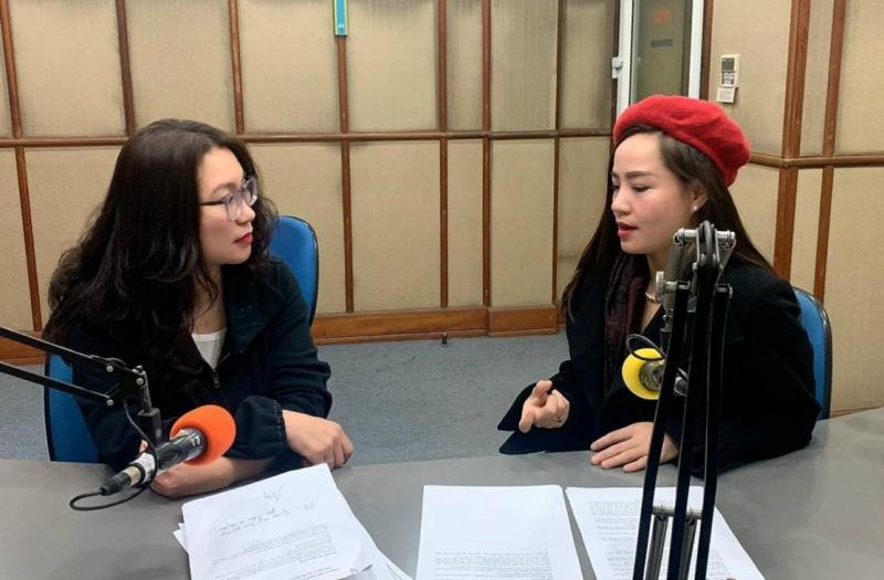 TS âm nhạc Đinh Hoài Xuân (bên phải) trò chuyện cùng BTV Bảo Trang |