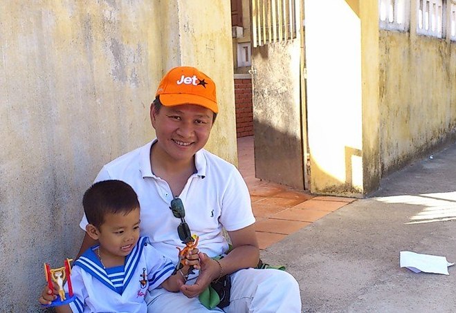 | Tiến sĩ Lê Thanh Hải và em bé trên quần đảo Trường Sa |