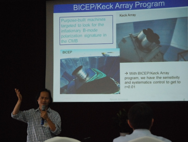 | Tiến sĩ Nguyễn Trọng Hiền đang giới thiệu với các nhà khoa học tham dự hội nghị vật lý quốc tế Gặp gỡ Việt Nam (tháng 8/2013, tại Quy Nhơn) về chuỗi các thí nghiệm BICEP và Keck |