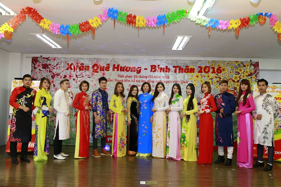 | Ảnh minh họa: Chị Lê Thị Anh Thư (đứng giữa, áo dài xanh) trong buổi lễ chào mừng năm mới Bính Thân 2016 |