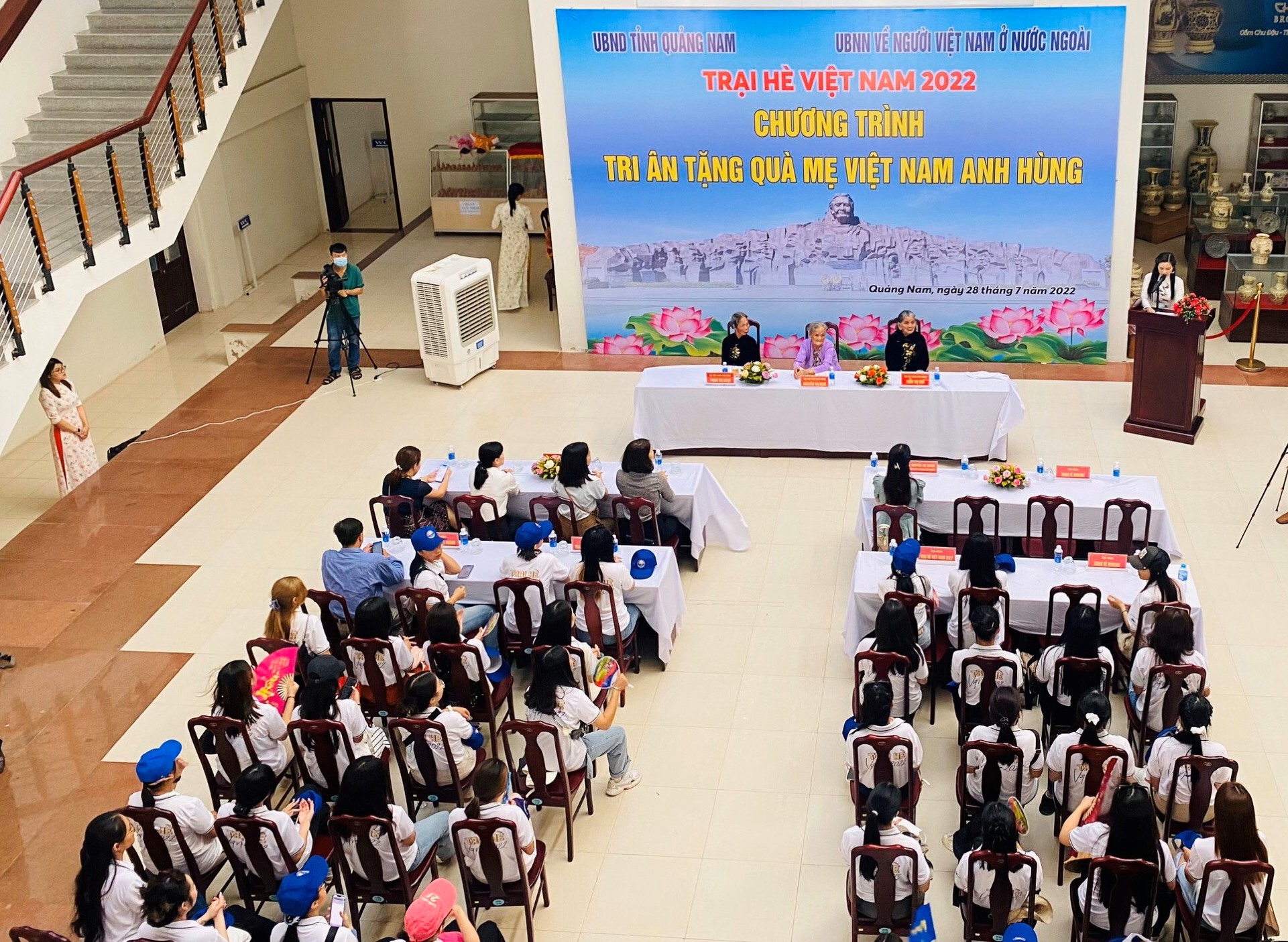 Các đại biểu thanh niên, sinh viên kiều bào gặp gỡ và tặng quà cho mẹ Việt Nam anh hùng tỉnh Quảng Nam. |
