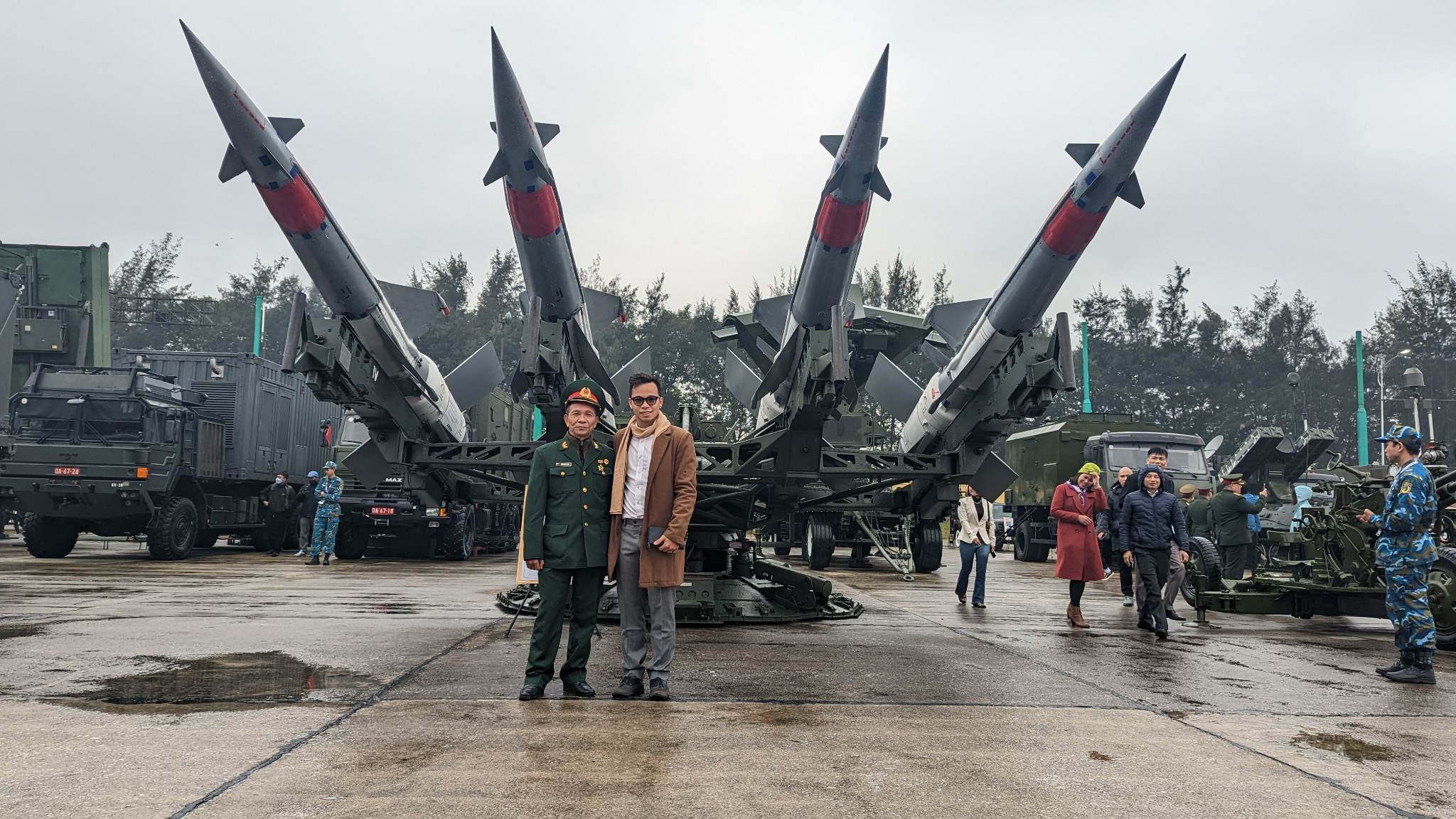 Lê Hưng cùng bố tham quan triển lãm quốc phòng quốc tế Việt Nam 2022.