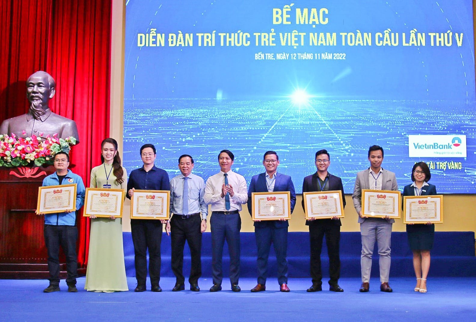 TS Lê Hưng ( thứ 2, bìa phải) nhận bằng khen tại Diễn đàn tri thức trẻ Việt Nam toàn cầu lần thứ 5 (2022) tại Bến Tre.