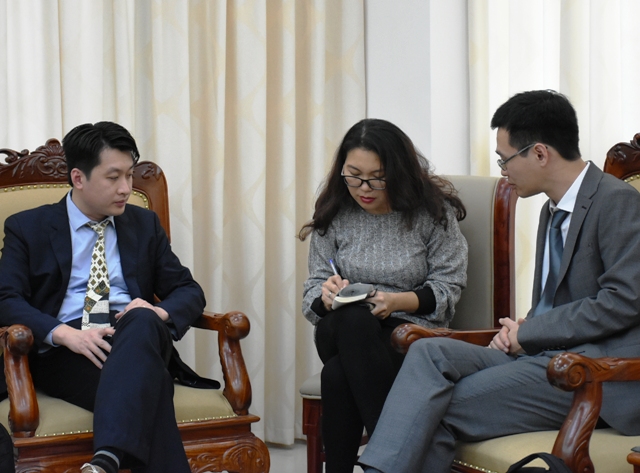 Tiến sĩ Lưu Vĩnh Toàn và Tiến sĩ Nguyễn Đình Quý trao đổi với phóng viên VOV5 |
