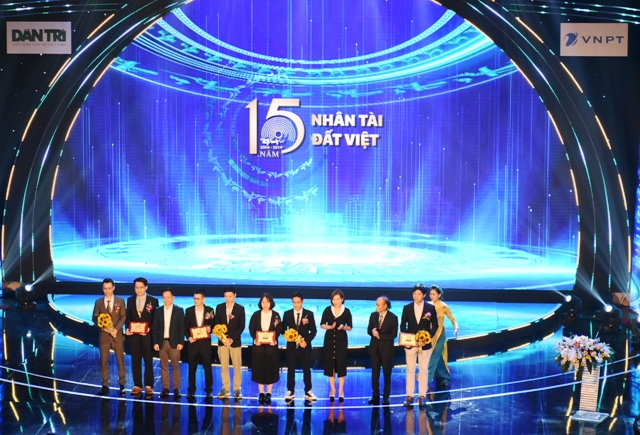 Hai thành viên của VietSearch (bìa trái) trong lễ trao giải Nhân tài Đất Việt 2019 |