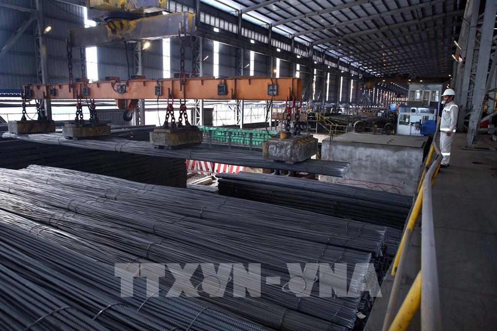 Bốc xếp sản phẩm thép xây dựng tại Cty CP Thép Hòa Phát Hải Dương cung ứng ra thị trường - Ảnh: Danh Lam/TTXVN |