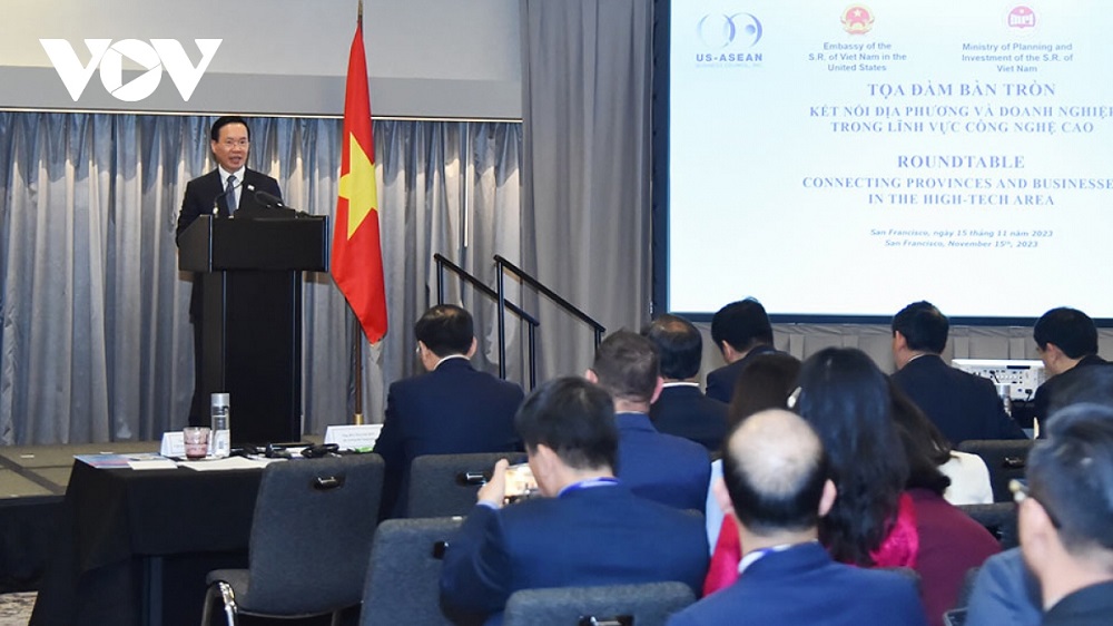 Chủ tịch nước Võ Văn Thưởng phát biểu tại Tọa đàm bàn tròn kết nối doanh nghiệp và địa phương Việt Nam-Hoa Kỳ. Ảnh: VOV |