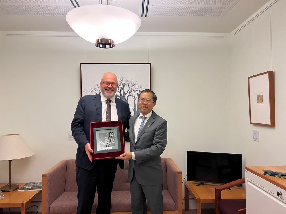 Hôm nay (27/03), tại trụ sở Nghị viện Australia ở thủ đô Canberra, Thượng Nghị sỹ, Đồng Bộ trưởng Thương mại Australua, Tim Ayres, tiếp Đại sứ Việt Nam tại Australia, Phạm Hùng Tâm.