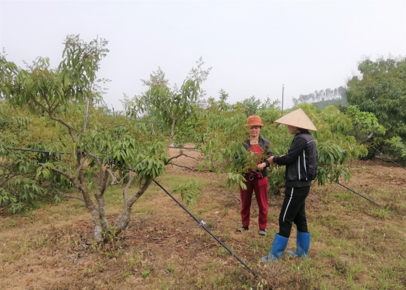 Một số hộ trồng vải chia sẻ: "Trồng chủ yếu là vải u hồng (vải chín sớm). Phun thuốc theo hướng dẫn của khuyến nông xã và những loại thuốc nằm trong danh mục cho phép. Định kỳ trước khi phun thuốc đều có cán bộ khuyến nông đến hướng dẫn."