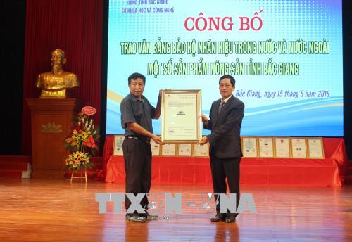 Tại lễ công bố, một số sản phẩm nông sản tiêu biểu, đặc trưng của tỉnh đã được Cục Sở hữu trí tuệ (Bộ Khoa học và Công nghệ) trao văn bằng bảo hộ nhãn hiệu ở trong nước và tại nhiều quốc gia trên thế giới; trong đó vải thiều Lục Ngạn được bảo hộ tại 8 quốc gia, mỳ Chũ và mỳ Kế được bảo hộ tại 5 quốc gia, gà đồi Yên Thế được bảo hộ tại 3 quốc gia.