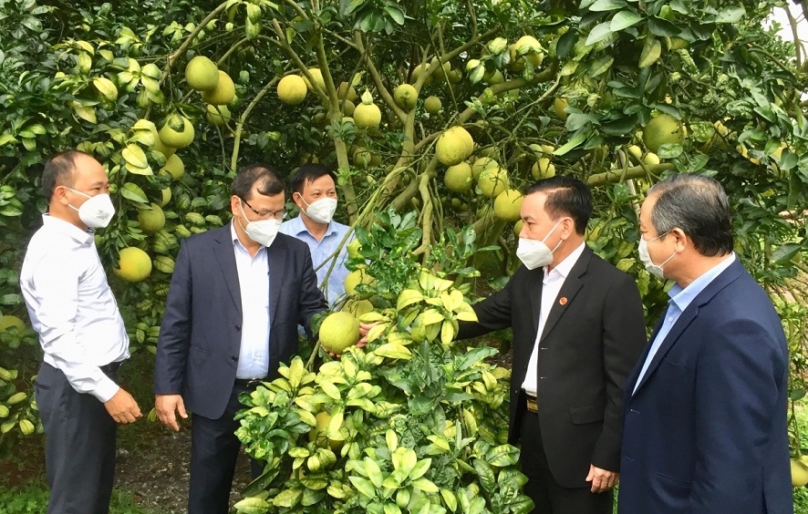 Lãnh đạo UBND tỉnh Bắc Giang kiểm tra các nhà vườn chuẩn bị các điều kiện đón khách. Ảnh: truyenhinhlucngan.vn |