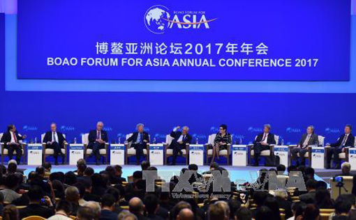Tại cuộc họp báo, Tổng Thư ký Diễn đàn Bác Ngao Chu Văn Trọng trình bày Tuyên bố của Diễn đàn châu Á Bác Ngao 2017 về thúc đẩy Toàn cầu hóa kinh tế. Theo đó, Chính phủ các nước coi toàn cầu hóa kinh tế là lực lượng tích cực. Thương mại xuyên biên giới và tự do hóa đầu tư là động lực của sự phát triển bền vững của thế giới. Chính phủ các nước cần chung sức phản đối chủ nghĩa bảo hộ thương mại, cùng kiên trì và tiếp tục thúc đẩy tiến trình tự do hóa đầu tư thương mại, đồng thời không ngừng cải cách và hoàn thiện cơ chế đầu tư thương mại đa phương, nhằm bảo đảm sự thịnh vượng chung của toàn thế giới.