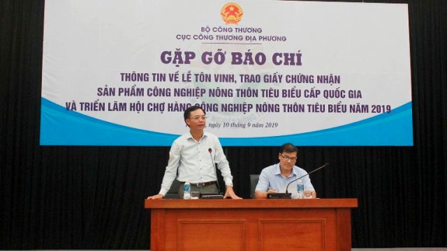 Tại cuộc họp báo chiều 10/9 ở Hà Nội, ông Ngô Quang Trung, Cục trưởng Cục Công nghiệp địa phương, Bộ Công Thương, cho biết sẽ có 110 sản phẩm, bộ sản phẩm được tôn vinh, trao Giấy chứng nhận sản phẩm hàng công nghiệp nông thôn tiêu biểu cấp quốc gia vào ngày 18/9 và Triển lãm hội chợ hàng công nghiệp nông thôn tiêu biểu năm 2019 kéo dài từ ngày 18-22/9 tại Khu di tích Hoàng Thành Thăng Long - Hà Nội.