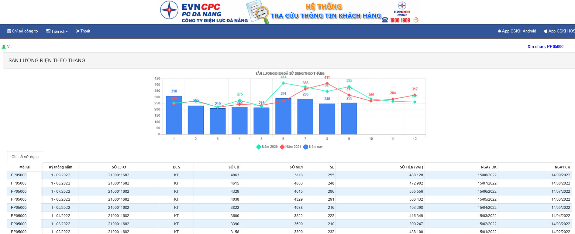 So sánh sản lượng điện tiêu dùng ở tháng hiện tại so với tháng trước và năm trước. Nguồn ảnh: Công ty MTV điện lực Đà Nẵng. |