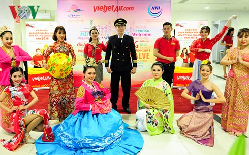 11 vị khách Việt Nam và quốc tế có mặt tại Thành phố Hồ Chí Minh vào ngày đầu tiên của năm mới 2018 đã đươc đón chào nồng nhiệt sáng 1/1. Đoàn khách nội địa đầu tiên có 3 khách đáp xuống ga Quốc nội sân bay Tân Sơn Nhất vào lúc 01h15 phút, trên chuyến bay VJ173 của Hãng hàng không Vietjet, khởi hành từ thủ đô Hà Nội. Đoàn khách quốc tế đầu tiên gồm 8 vị khách khởi hành từ Pháp, xuống tại ga Quốc tế sân bay Tân Sơn Nhất vào lúc 7h30 phút, trên chuyến bay VN10 của Hãng hàng không Quốc gia Việt Nam (Vietnam Airline).