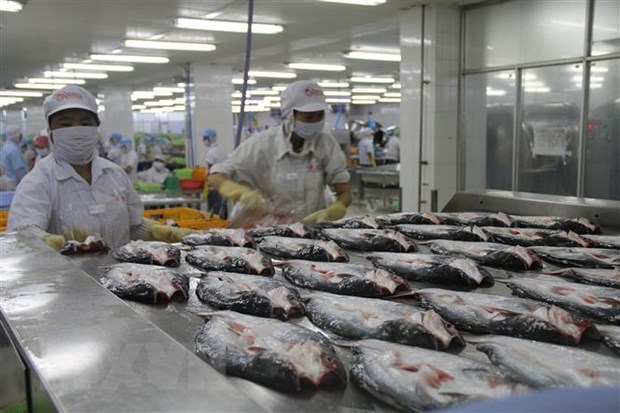 Chế biến cá da trơn xuất khẩu ở Công ty Cổ phần Gò Đàng, Khu Công nghiệp Mỹ Tho, Tiền Giang. Ảnh: Minh Trí/TTXVN |