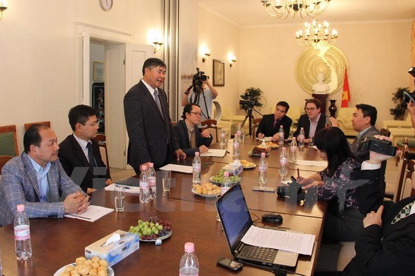 | Đại sứ Đoàn Xuân Hưng phát biểu tại cuộc họp báo tại trụ sở Đại sứ quán ở Berlin. (Ảnh: Vietnam+) |
