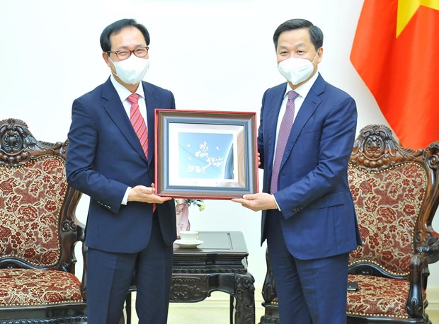 Phó Thủ tướng Lê Minh Khái tiếp Tổng Giám đốc Tổ hợp Samsung Việt Nam Choi Joo Hoo. Ảnh: Minh Đức/TTXVN |