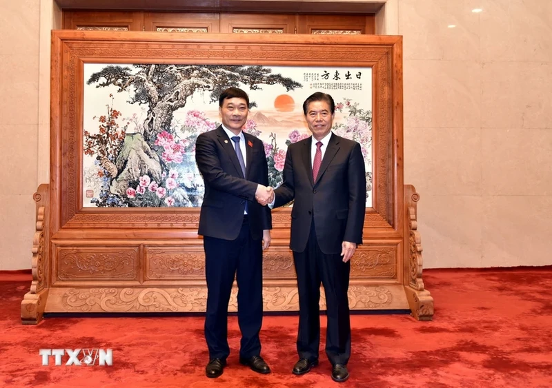 Chủ nhiệm Ủy ban Kinh tế Vũ Hồng Thanh và Chủ nhiệm Ủy ban Tài chính Kinh tế của Nhân đại toàn quốc Trung Quốc Trung Sơn. Ảnh: quochoi.vn |