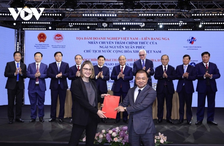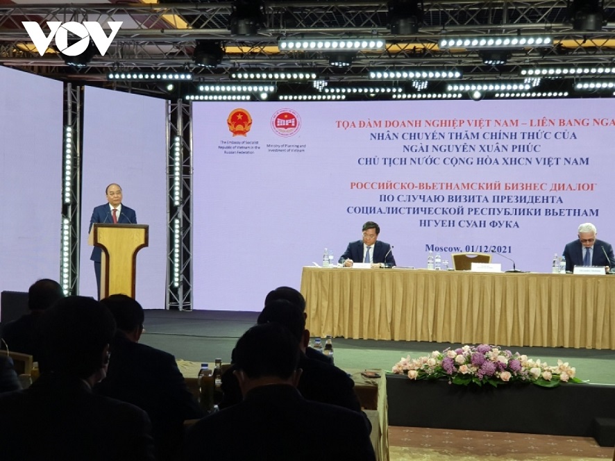 Phát biểu tại tọa đàm, Chủ tịch nước Nguyễn Xuân Phúc thông báo với doanh nghiệp hai nước về kết quả tốt đẹp của cuộc hội đàm với Tổng thống Putin, mở ra nhiều nội dung hợp tác trong nhiều lĩnh vực, nhất là kinh tế và thương mại. Việt Nam là nền kinh tế quy mô lớn thứ 3 ASEAN, là nước tham gia 15 hiệp định thương mại tự do với nhiều hiệp định tiêu chuẩn cao, đầu tư vào Việt Nam, các doanh nghiệp Nga có cơ hội thâm nhập vào các thị trường hết sức rộng lớn.