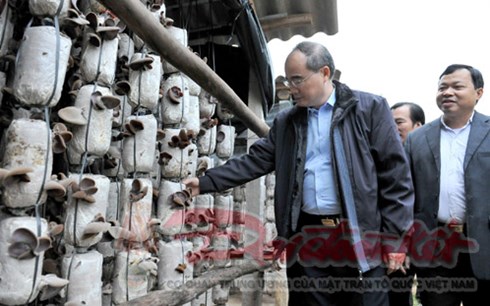 | Chủ tịch UBTƯMTTQ Nguyễn Thiện Nhân thăm HTX Nấm Tiên Lục huyện Lạng Giang, tỉnh Bắc Giang. |