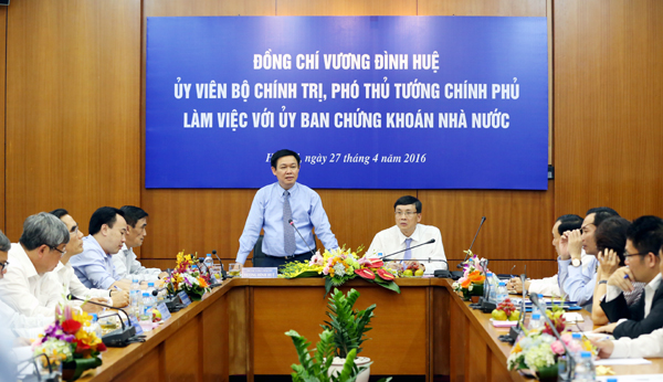 Tại buổi làm việc, Phó Thủ tướng Vương Đình Huệ đánh giá, 5 năm qua, thị trường chứng khoán đã có bước phát triển đáng kể, góp phần tăng tính thanh khoản, minh bạch thị trường tài chính.