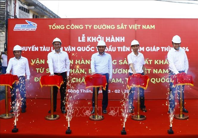 Hôm qua (21/2), tại Ga Sóng Thần, thành phố Dĩ An (Bình Dương), Tổng công ty Đường sắt Việt Nam tổ chức Lễ khởi hành chuyến tàu liên vận quốc tế đầu tiên năm Giáp Thìn 2024 vận chuyển hàng nông sản xuất khẩu từ Sóng Thần, Bình Dương đến Trịnh Châu, Hà Nam (Trung Quốc).