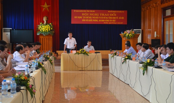 Ngày 22/8, tại tỉnh Yên Bái diễn ra hội nghị trao đổi xây dựng "Cơ chế đặc thù đầu tư cơ sở hạ tầng kinh tế - xã hội gắn với quốc phòng, an ninh vùng Tây Bắc” với sự tham dự của đại biểu các bộ, ngành Trung ương; đại diện các tỉnh Lào Cai, Hà Giang, Lai Châu cùng các sở, ban, ngành của tỉnh Yên Bái.