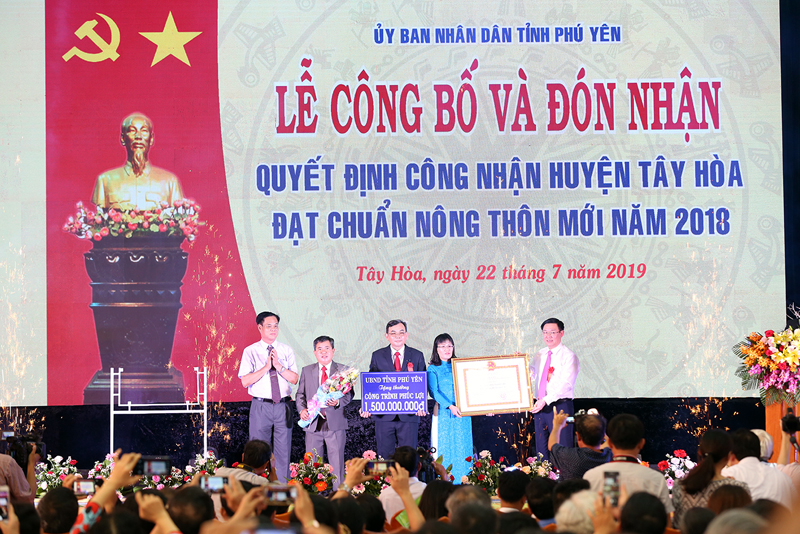 Chiều 22/7, tại huyện Tây Hòa, tỉnh Phú Yên tổ chức Lễ công bố và đón nhận Quyết định của Thủ tướng Chính phủ công nhận huyện Tây Hòa đạt chuẩn nông thôn mới năm 2018. Phó Thủ tướng Chính phủ Vương Đình Huệ, Trưởng ban Chỉ đạo các Chương trình mục tiêu quốc gia, dự và trao Bằng công nhận đạt chuẩn nông thôn mới cho lãnh đạo địa phương. Tây Hòa là huyện nông thôn mới đầu tiên ở tỉnh Phú Yên.