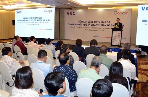 Ngày 2/11 tại thành phố Hồ Chí Minh, Phòng Thương mại và Công nghiệp Việt Nam (VCCI) phối hợp với Công ty Google châu Á Thái Bình Dương (Google APAC), tổ chức hội thảo “Đón làn sóng công nghệ số: Doanh nghiệp nhỏ và vừa Việt Nam đã sẵn sàng”, nhằm hỗ trợ các doanh nghiệp Việt Nam tận dụng sức mạnh của công nghệ số trong việc nâng cao năng lực cạnh tranh trong thời gian tới. Theo VCCI, công nghệ số có vai trò và tác động to lớn đối với hoạt động của các doanh nghiệp Việt Nam. Năm 2015, có tới 95% doanh nghiệp Việt Nam đã sử dụng Internet, nhưng con số doanh nghiệp gặp khó khăn trong ứng dụng công nghệ thông tin lên tới gần 60%. Ông Đậu Anh Tuấn, Trưởng Ban Pháp chế VCCI cho rằng thực tế những doanh nghiệp ứng dụng công nghệ thông tin hiệu quả thường dễ tiếp cận thông tin chính sách, pháp luật hơn, thực hiện thủ tục hành chính nhanh hơn và có kết quả kinh doanh tốt hơn.