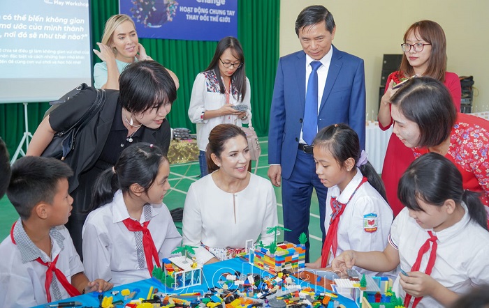 Công nương Đan Mạch giao lưu với các em Trường Tiểu học Thanh Nghị (huyện Thanh Liêm). Ảnh: Báo Hà Nam |