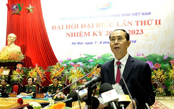 Phát biểu tại Đại hội, Chủ tịch nước Trần Đại Quang chúc mừng những thành tích mà Hiệp hội Doanh nhân Cựu chiến binh Việt Nam nỗ lực đạt được trong nhiệm kỳ qua; biểu dương các doanh nhân cựu chiến binh trên cả nước đã nêu cao tinh thần tự lực, tự cường, đoàn kết, nỗ lực phấn đấu vươn lên, tích cực sản xuất kinh doanh, xây dựng gia đình ấm no, hạnh phúc, góp phần xây dựng quê hương, đất nước giàu đẹp.