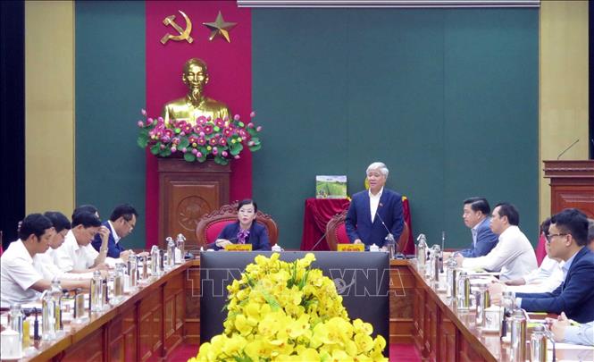 Ông Đỗ Văn Chiến, Bí thư Trung ương Đảng, Bộ trưởng, Chủ nhiệm Ủy ban Dân tộc phát biểu tại buổi làm việc. Ảnh: TTXVN |