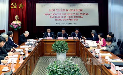 (VOV5) - Ngày 15/2, tại Hà Nội, diễn ra Hội thảo Khoa học “Hoàn thiện thể chế kinh tế thị trường định hướng xã hội chủ nghĩa trong bối cảnh mới”.
