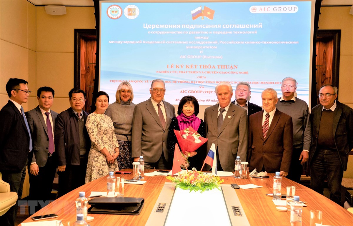 Chiều 15/9, tại thủ đô Moscow, Viện Hàn lâm quốc tế về khoa học hệ thống (MASI) Liên bang Nga, trường Đại học Tổng hợp công nghệ hoá học mang tên Mendeleev và Công ty Cổ phần Tiến bộ quốc tế (AIC) tổ chức buổi lễ ký kết hợp tác, nghiên cứu, phát triển và chuyển giao cho Việt Nam nhiều công nghệ mới trong các lĩnh vực gồm công nghệ thông tin, môi trường và y tế.
