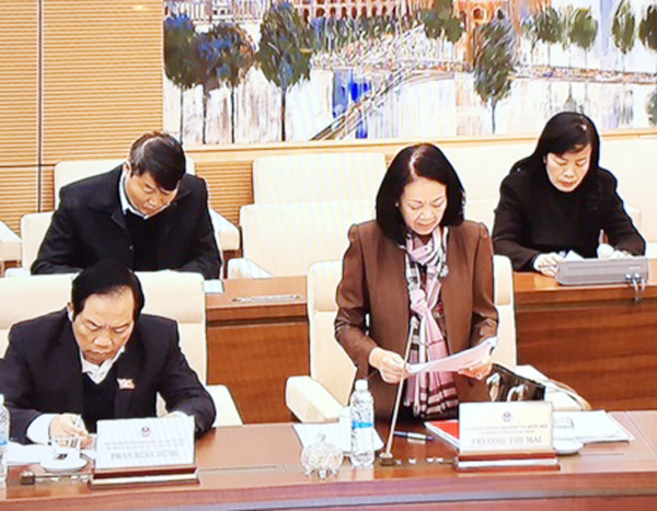 | Chủ nhiệm Ủy ban về các Vấn đề xã hội của Quốc hội Trương Thị Mai phát biểu ý kiến. Ảnh: TTXVN |
