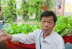 | Ảnh minh họa: PGS Hồ Hữu An giới thiệu công nghệ trồng rau không đất tại Techmart 2012. Ảnh: tiasang.com.vn |