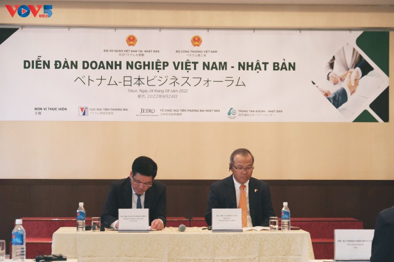Bộ trưởng Bộ công thương Nguyễn Hồng Diên và Đại sứ VN tại Nhật Bản Vũ Hồng Nam tham dự diễn đàn. Ảnh: PV VOV tại Nhật Bản |