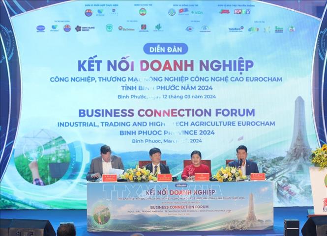 Hôm qua (12/03), tại thành phố Đồng Xoài, tỉnh Bình Phước, diễn ra “Diễn đàn kết nối doanh nghiệp công nghiệp, thương mại, nông nghiệp công nghệ cao EuroCham - Bình Phước năm 2024”. Diễn đàn do Uỷ ban nhân dân (UBND) tỉnh Bình Phước phối hợp Hiệp hội Doanh nghiệp châu Âu tại Việt Nam (EuroCham) và một số tập đoàn tổ chức.