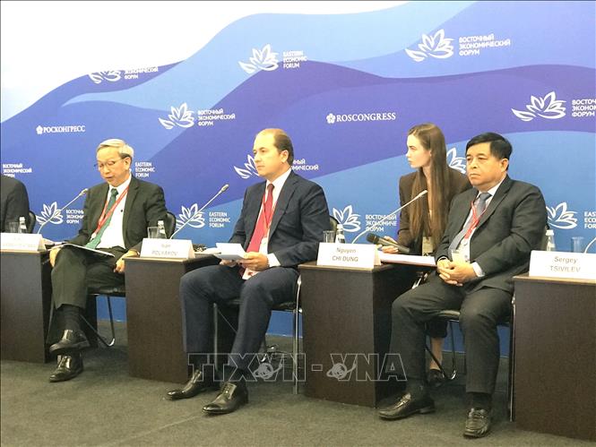Đoàn Việt Nam tham dự Diễn đàn Kinh tế phương Đông lần thứ 4 đang diễn ra tại thành phố Vladivostok, LB Nga, do Bộ trưởng Bộ Kế hoạch và Đầu tư Nguyễn Chí Dũng dẫn đầu.
