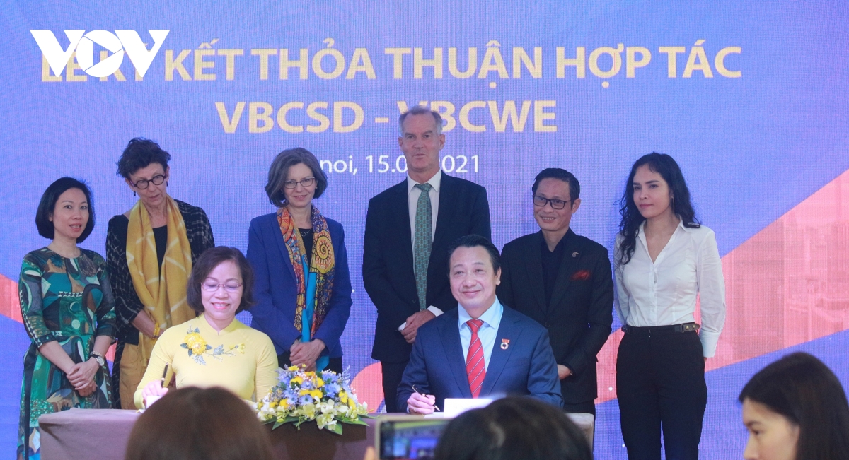 Lễ ký kết thỏa thuận hợp tác giữa VBCWE và VBCSD. Ảnh: VOV |