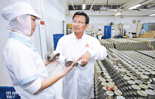 | Kiểm tra thực phẩm đóng hộp ở Công ty Việt Nam kỹ nghệ súc sản (VISSAN) trước khi xuất xưởng. Ảnh: nhandan |