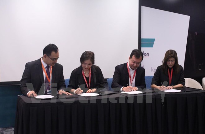 | Đại diện UNET và Kydon ký thỏa thuận hợp tác. (Ảnh: Vietnam+) |