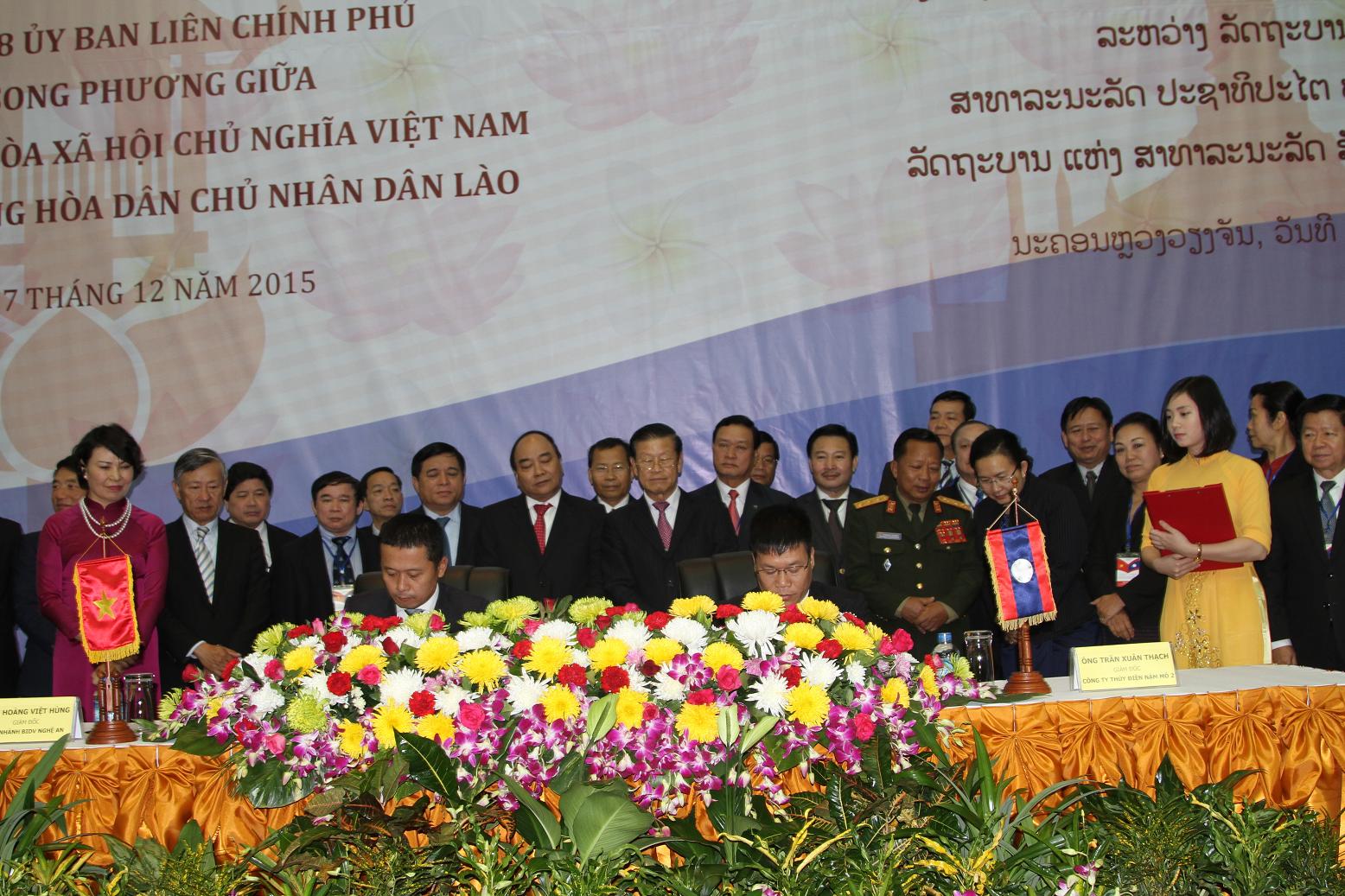 Nhân dịp tham dự Kỳ họp lần thứ 38 Ủy ban liên Chính phủ về hợp tác song phương Việt Nam-Lào, Lào-Việt Nam tại Thủ đô Vientiane, Lào, Phó Thủ tướng Chính phủ Nguyễn Xuân Phúc, Chủ tịch Ủy ban hợp tác Việt Nam-Lào; Phó Thủ tướng Chính phủ Somsavat Lengsavad, Chủ tịch Ủy ban hợp tác Lào-Việt Nam đã chứng kiến Lễ ký kết Hợp đồng tín dụng Dự án Thủy điện Nậm mô 2 (Việt Nam) - tỉnh Xiêng khoảng (Lào).